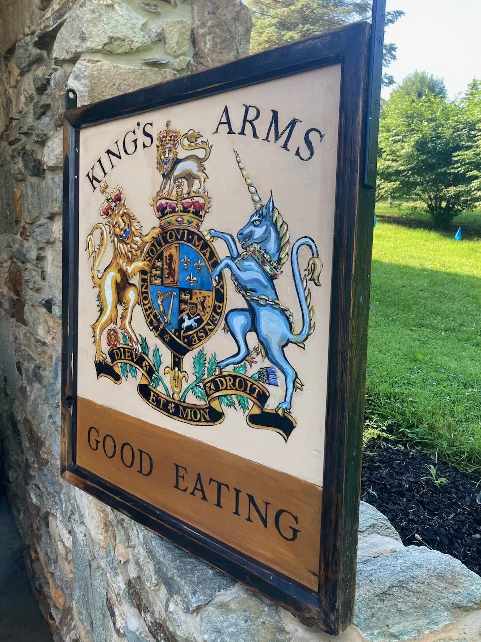 A custom tavern sign for a client in Williamsburg, VA; The family was renovating their house and wanted to honor their dog in a whimsical manner by including her in the fabric of an original tavern sign.